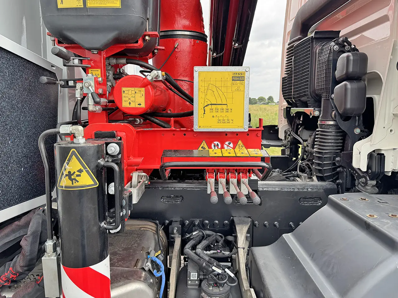 Equipped with Fassi crane and flatbed: