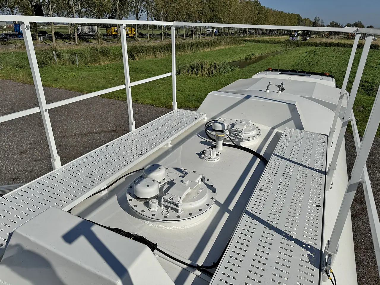 Aluminum antislip catwalk on top of the tank and safety handrail.