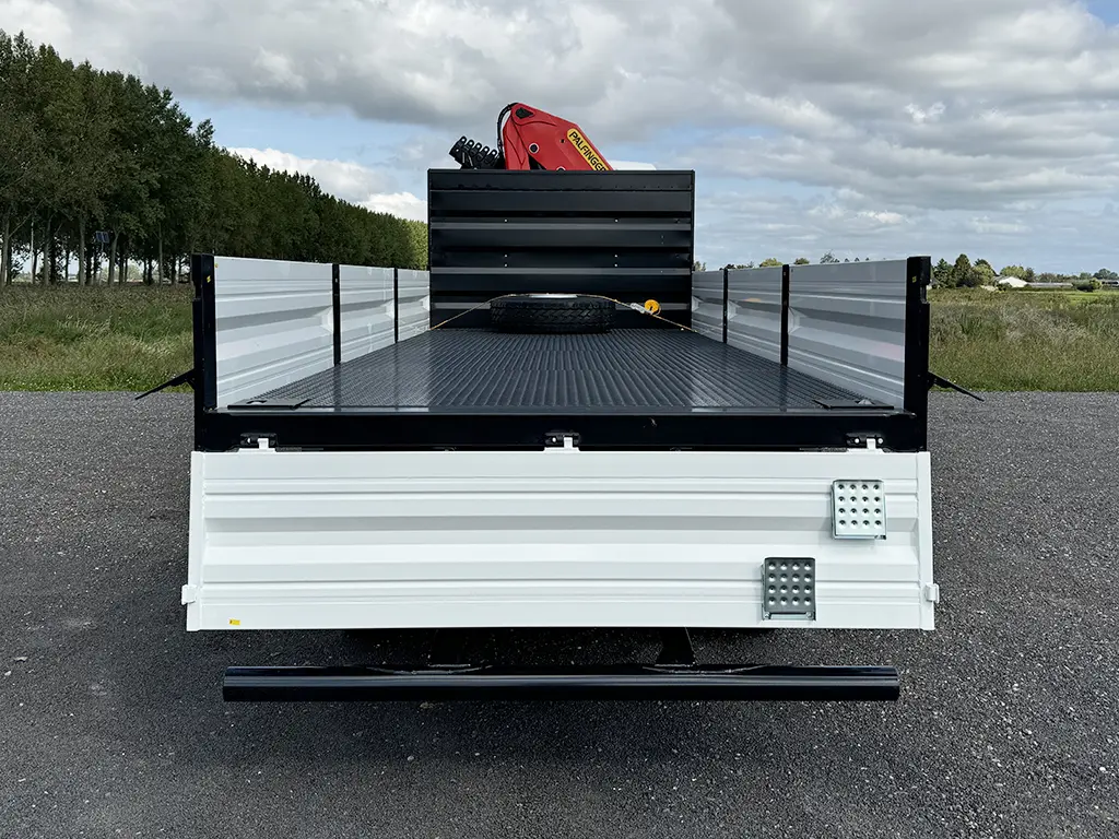 Open flatbed body with foldable sideboards