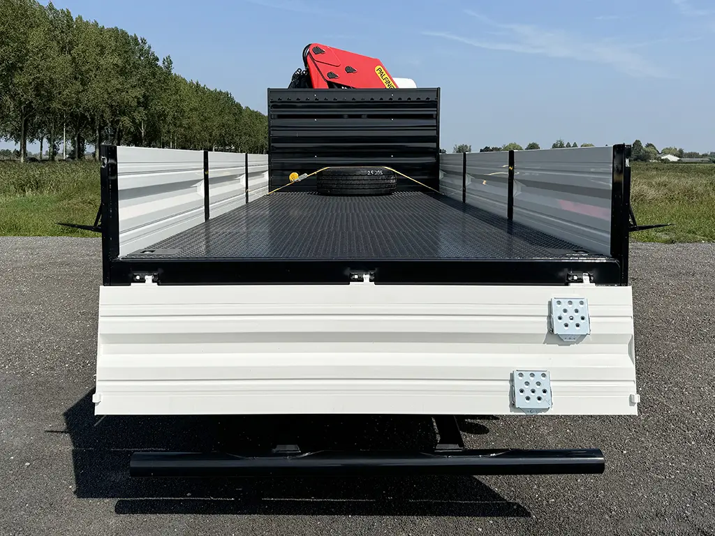 Open flatbed body with foldable sideboards