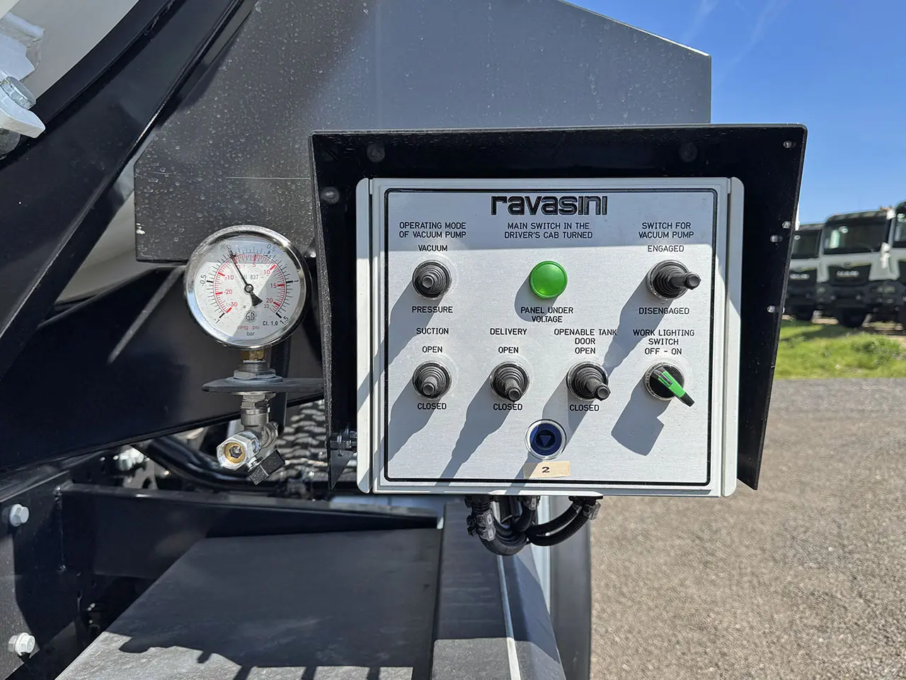 Control and instruments panel placed on the rear side of the tank